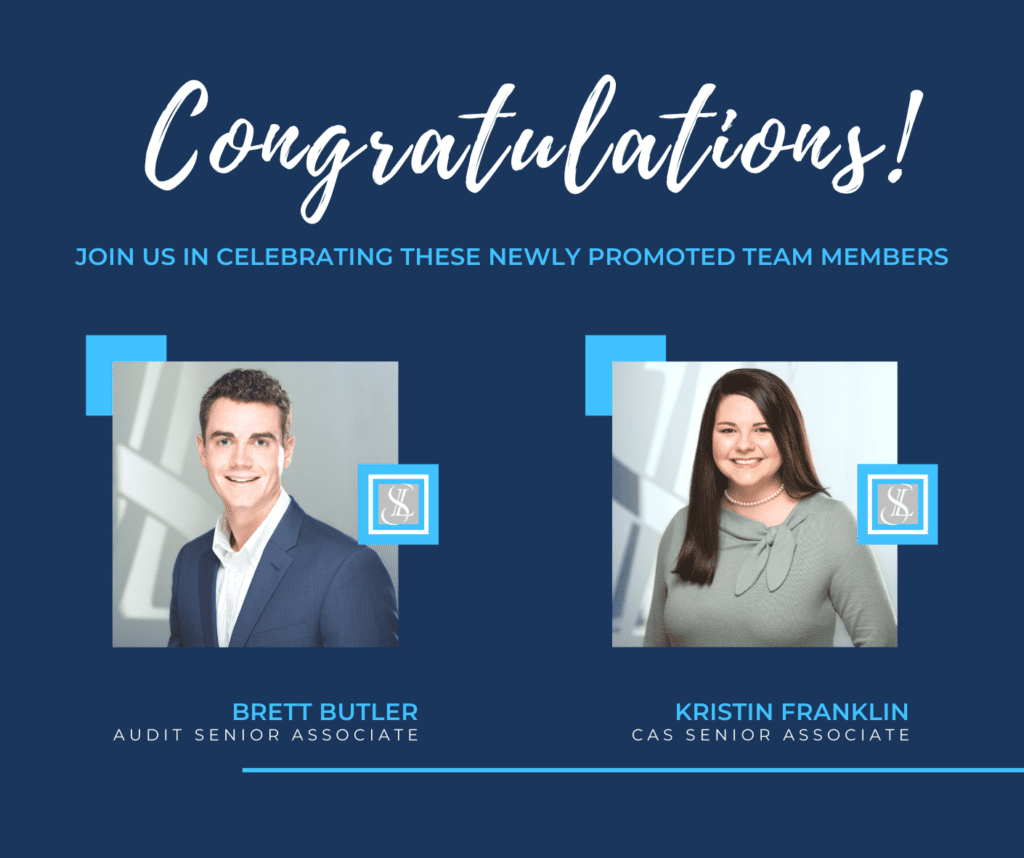 Scotti Teschke has been promoted to Audit Partner. James Harmon, Jeremy Hiatt, and Andrew Wright have all been elevated to the position of Audit Director. Derrick Greene and Tim Ils are now Tax Managers. Brett Butler is an Audit Senior. Kristin Franklin is a Client Accounting Services Senior. Luke Shoemaker is an Experienced Tax Associate, and Taylor Short is an Experienced Audit Associate. Hearty congratulations to all of our newly promoted team members!